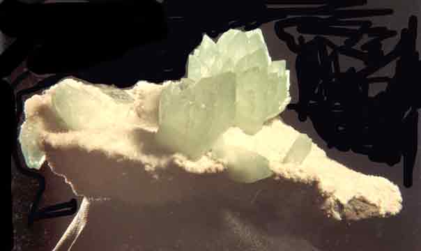 The mineral crystallizations which are formed in the lava rock air pockets is called ZEOLITE.One of the ZEOLITE group is Apophyllite, which has a four-sided diamond-faced structure and is a rare and much sought after rock. It can be transparent or translucent, can appear clear as well as in various shades of green.